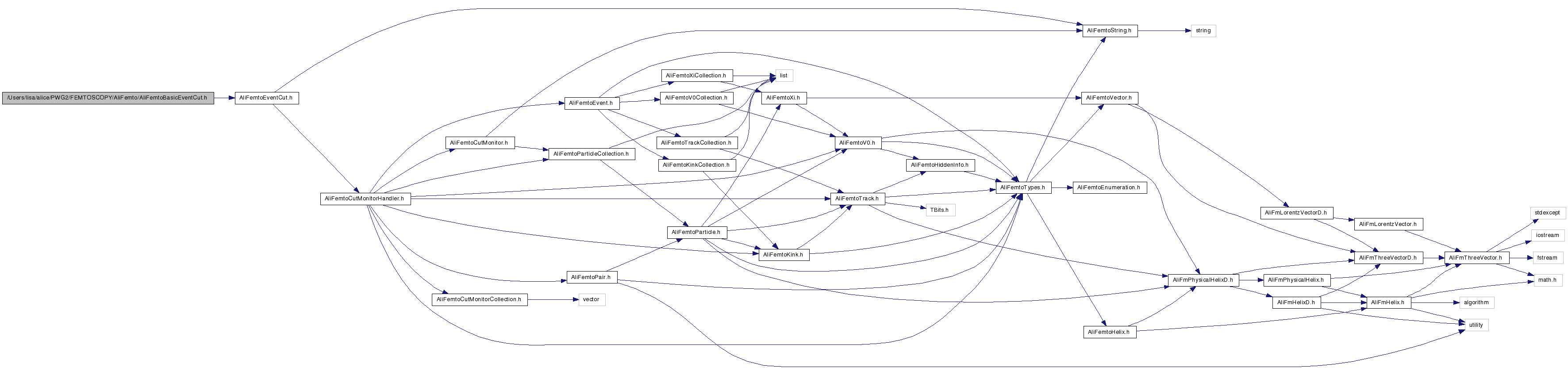 Include dependency graph for AliFemtoBasicEventCut.h: