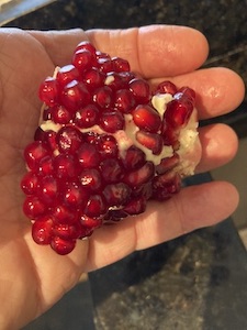 Section of pomegranate with membrane removed