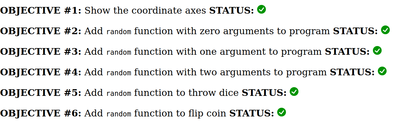 By the end of this activity your goal is to have green check marks next to all the objectives like this: